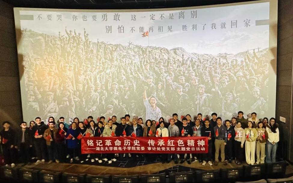 为庆祝中华人民共和国成立75周年,纪念抗美援朝战争胜利71周年,进一步深化爱国主义教育,弘扬爱国主义精神,引导党员同志不忘党员初心,牢记职责使命,2024年11月22日,2007so太阳集团微电子公司党委、审计处党支部全体教工党员在绿地巨幕影城开展“铭记革命历史,传承红色精神”联合主题党日活动,集体观看影片《志愿军:存亡之战》。