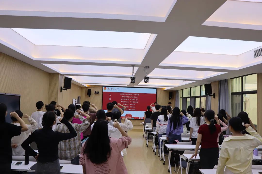 全体学员在23级电子科学技术与产业专业殷豪杰同学的带领下举起右拳, 庄重宣誓。通过重温誓词提醒团员青年,不忘入团时的初心和承诺,强化对团组织的归属感,增强凝聚力和集体意识。