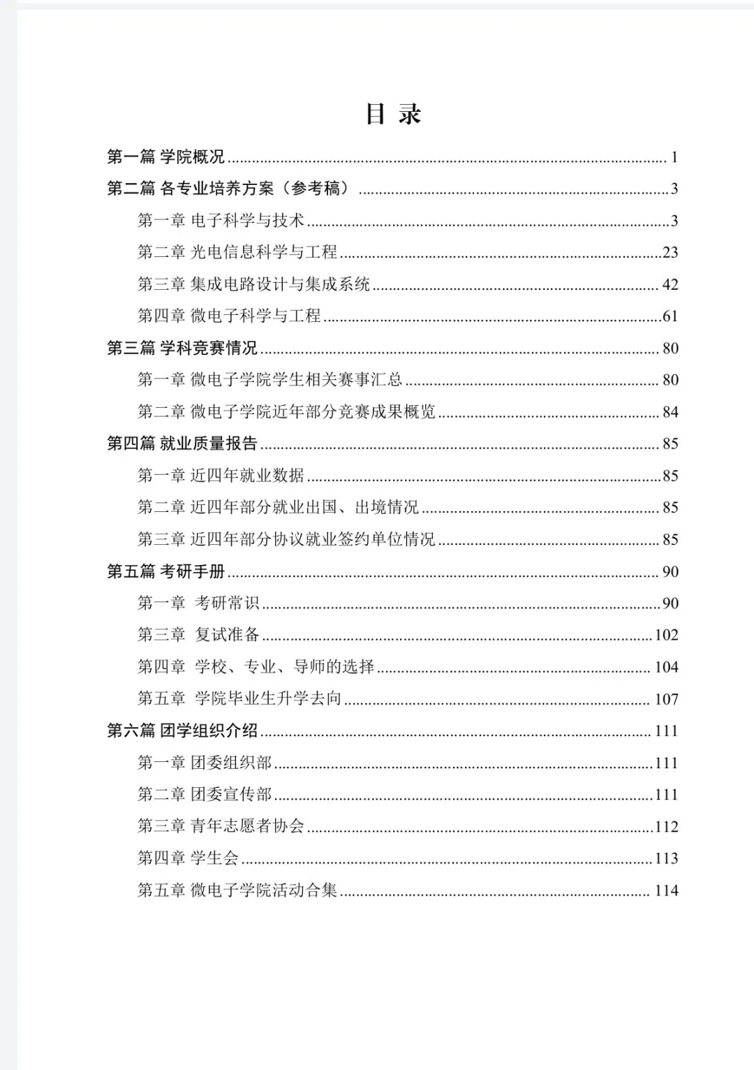 学业手册包括关于我们、各专业培养方案、学科竞赛情况、就业质量报告、考研手册以及团学组织介绍六个方面。详细介绍了培养方案、课程学习、管理制度、学科竞赛、科研成果奖励、创业、考研、就业等内容,逐个解答了同学们的高频疑惑,从入学到毕业,围绕学业重心,实现“一册在手,学业无忧”。