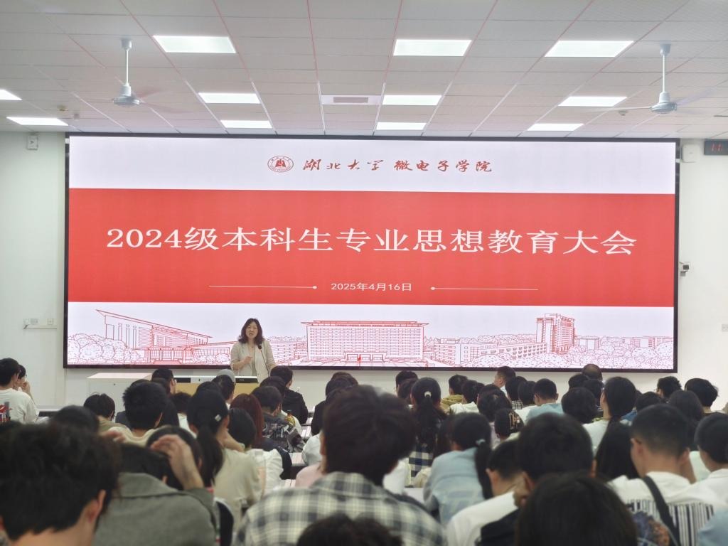 2025年4月16日上午10点,公司在阳逻校区B300教室召开2024级本科生专业及思政教育会议。公司党委书记王晓玲、经理游龙、党委副书记田务民出席,2024级全体本科生共计297人参与。