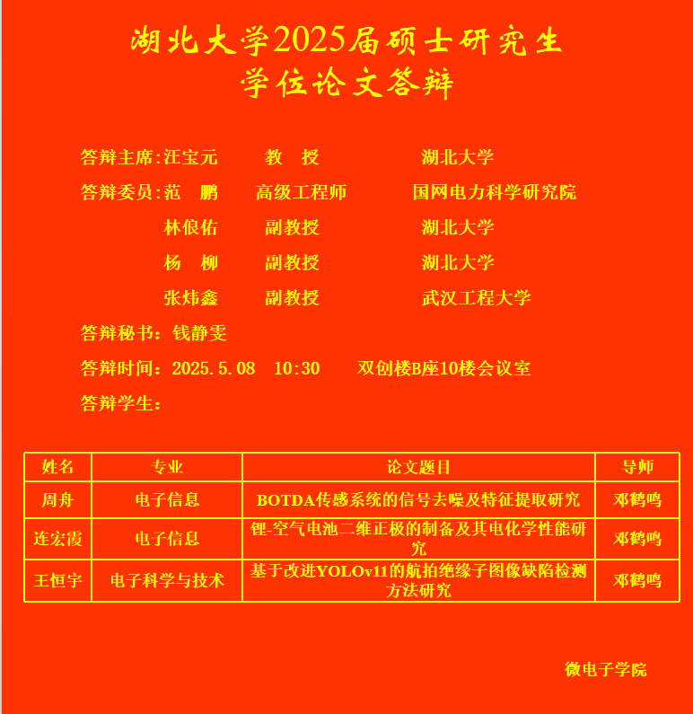 上一篇:微电子公司2025年上半年研究生答辩公告(三)
